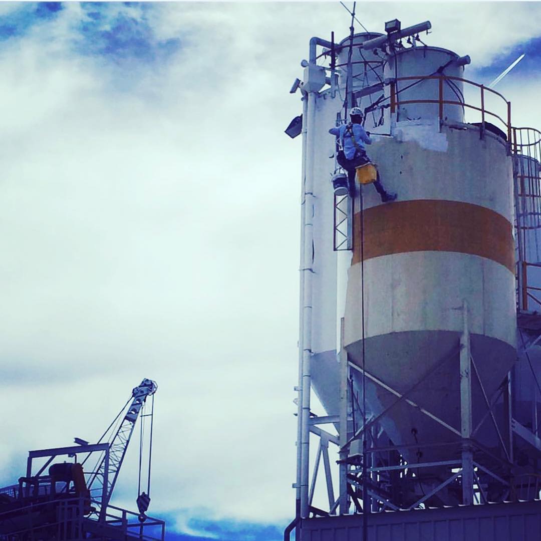 Annual painting of concrete hoppers during the yearly shutdown. Canberra this year. #petzl #ropeaccess #abseiling