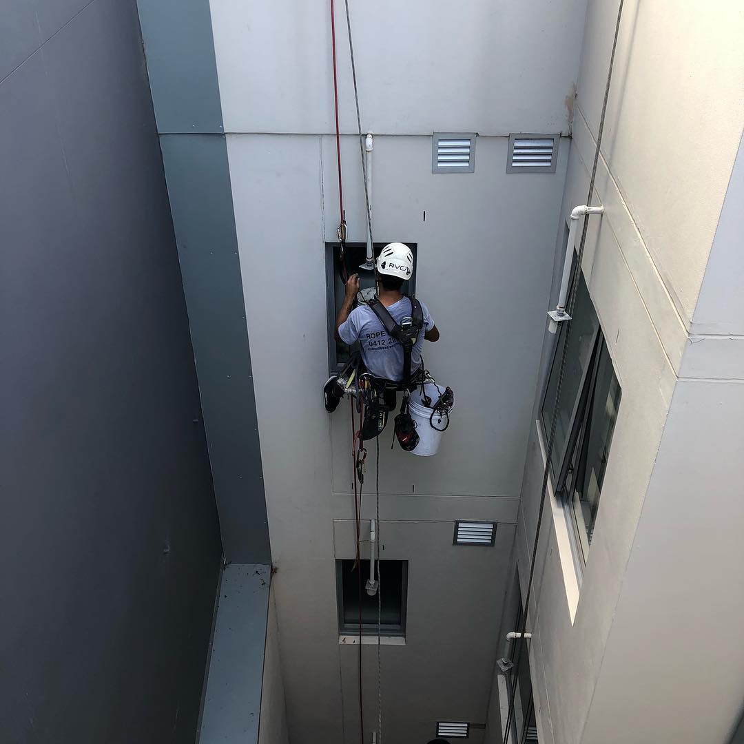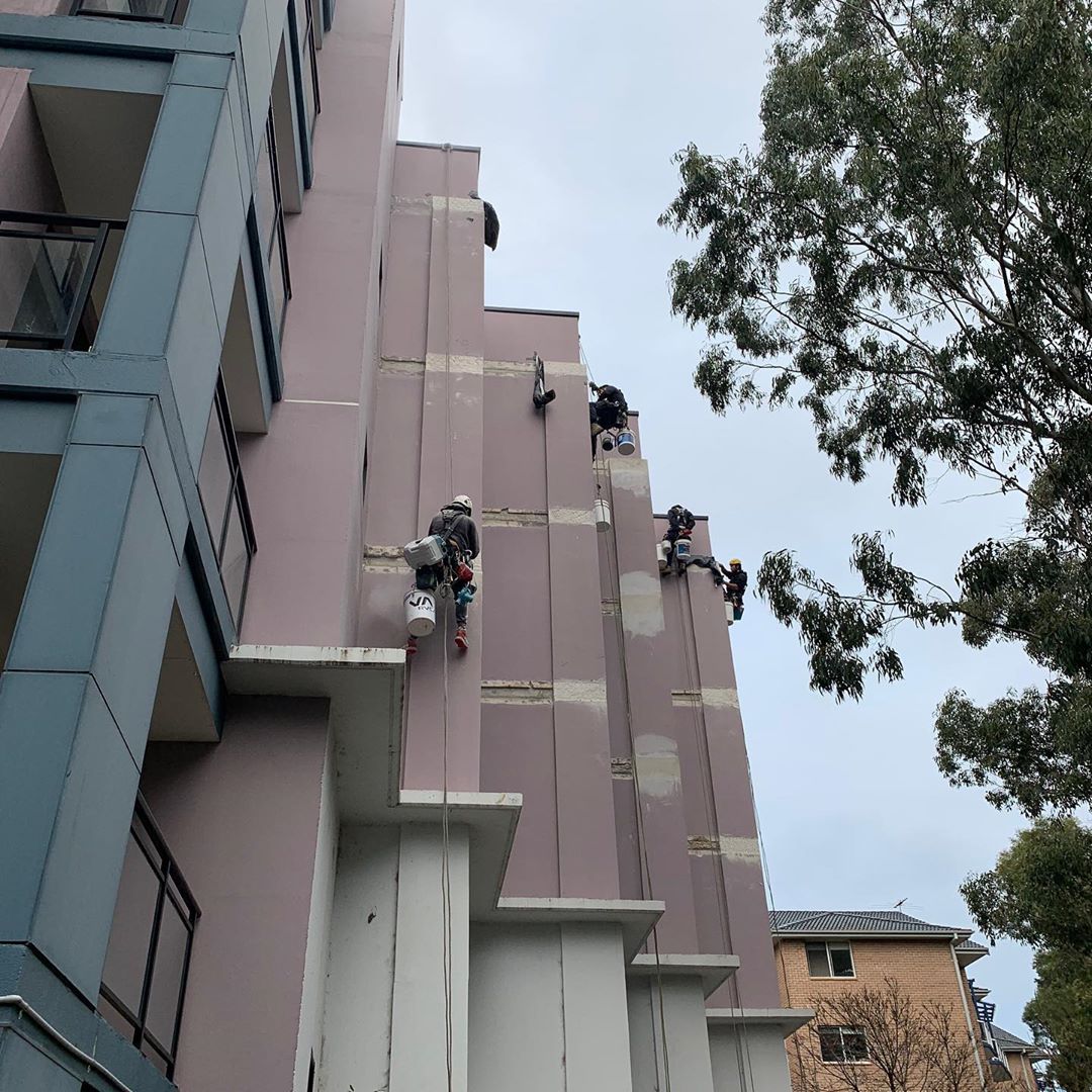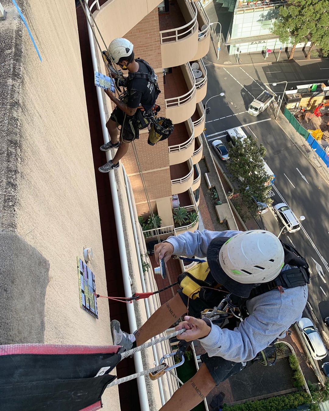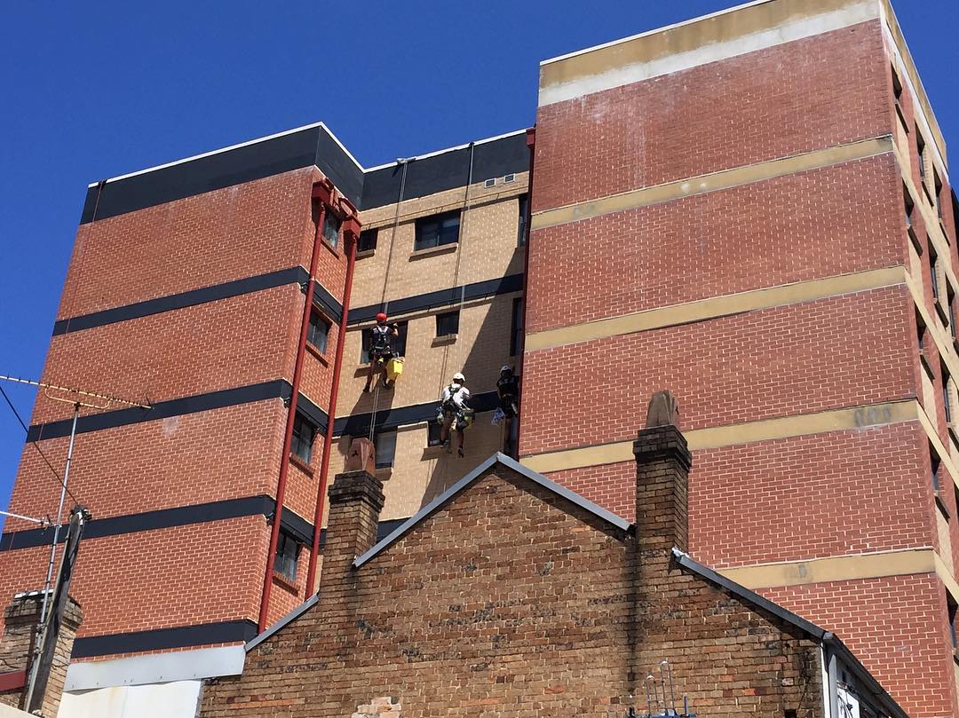 Progress @ Surry Hills. All slab band failing render removed and reinstated. #cheaperthanscaffold #petzl #petsofinstagram #ropeaccesstechnician #ropeaccess